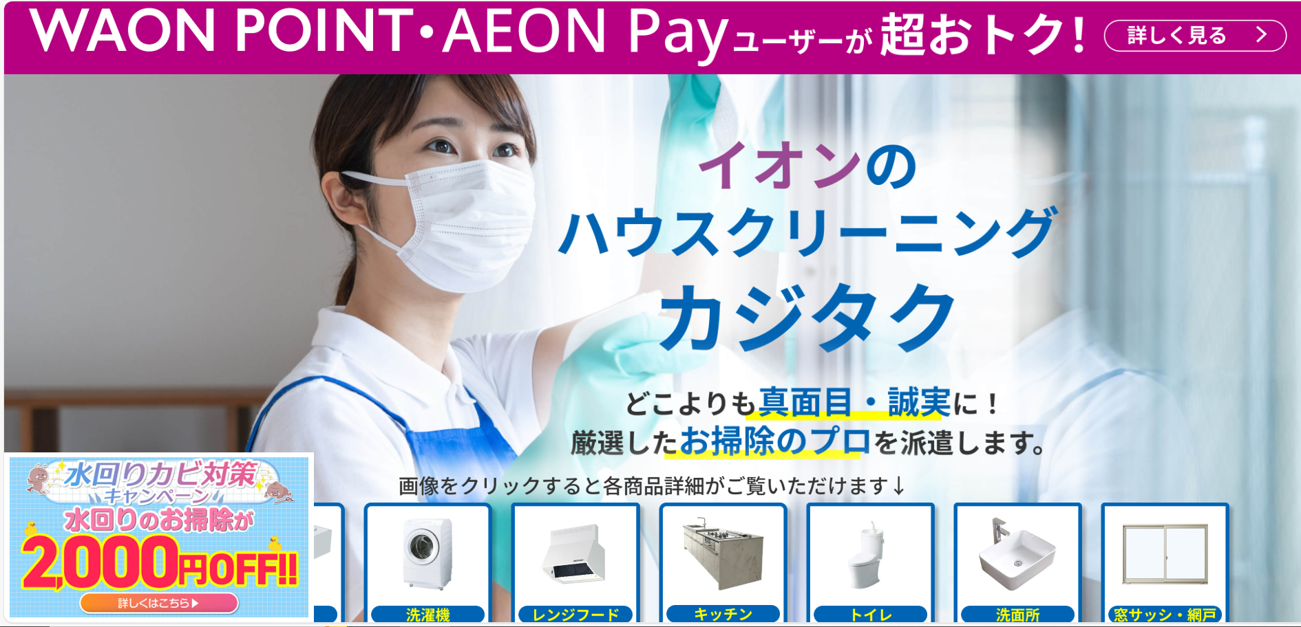 カジタクは、家事代行・ハウスクリーニング・宅配クリーニングまでワンストップで頼めるイオングループのブランド。
