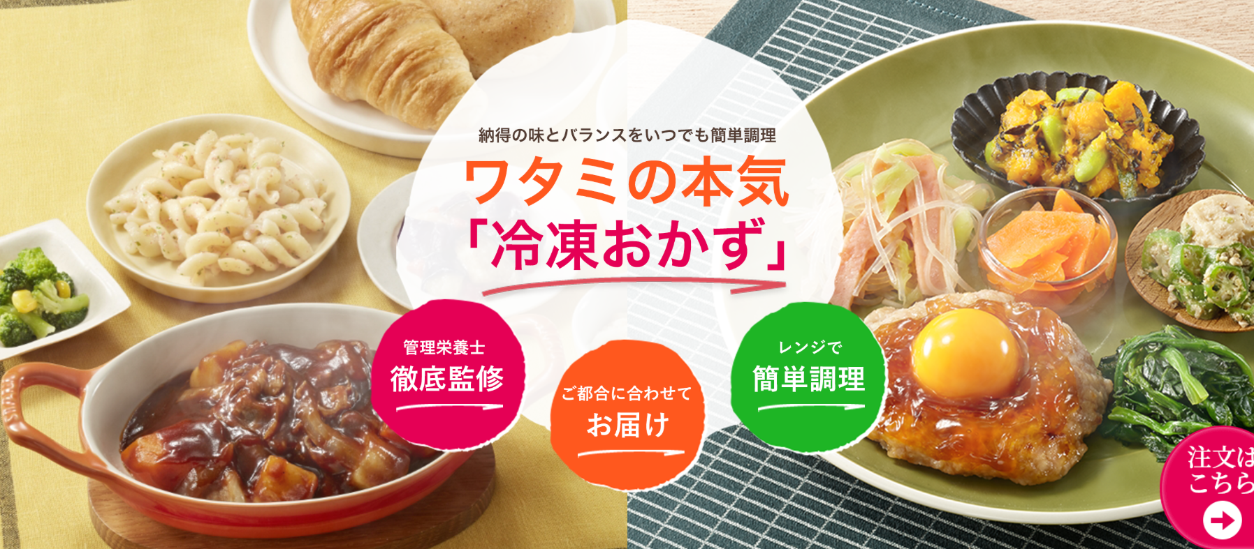 ワタミの宅食ダイレクトは、塩分やカロリーに配慮して管理栄養士が献立設計した“冷凍惣菜”を宅配便でお届け。