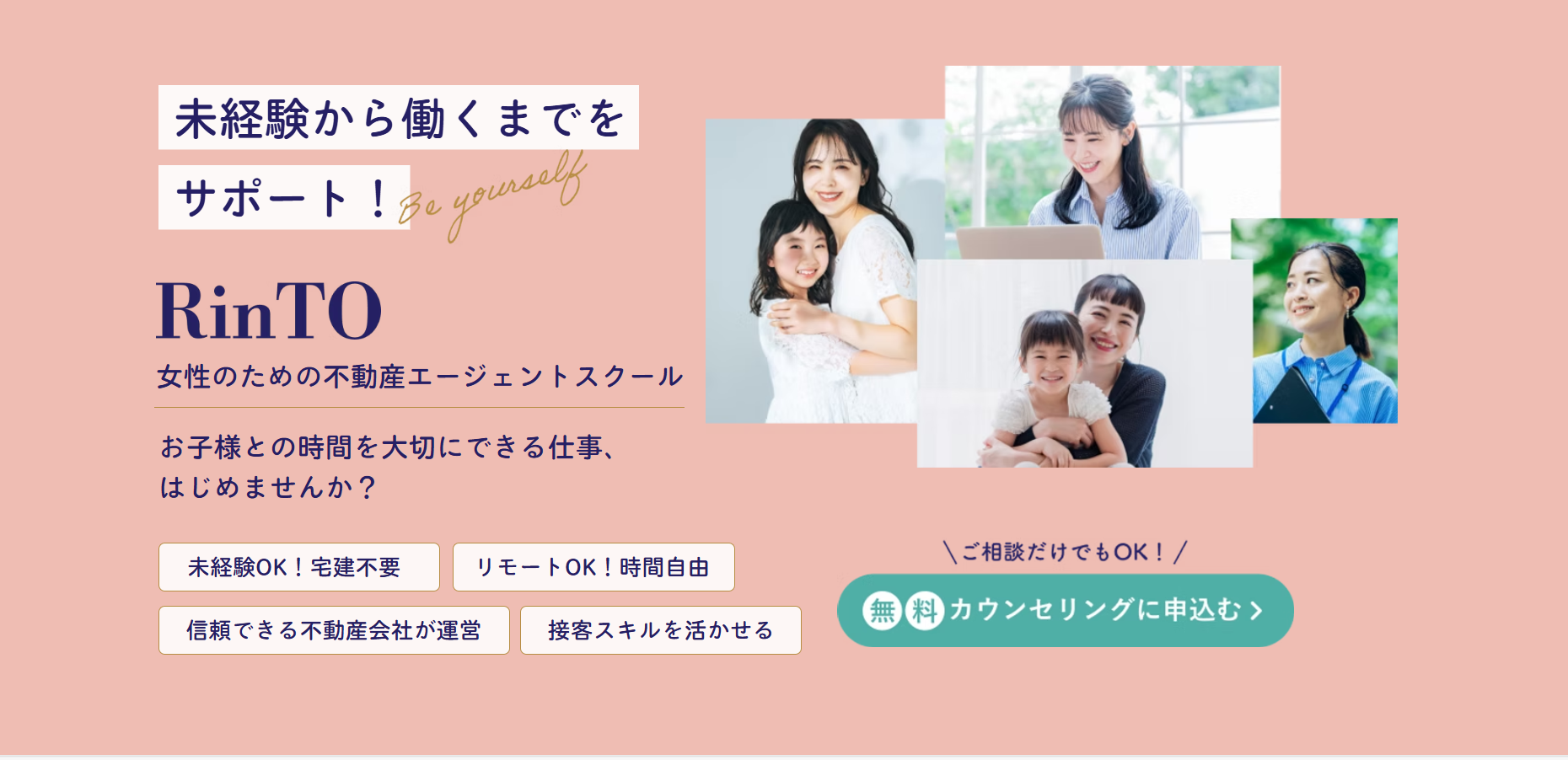 RinTo(リント)は、女性におすすめ/未経験歓迎・資格不要の不動産エージェント養成オンラインスクール。