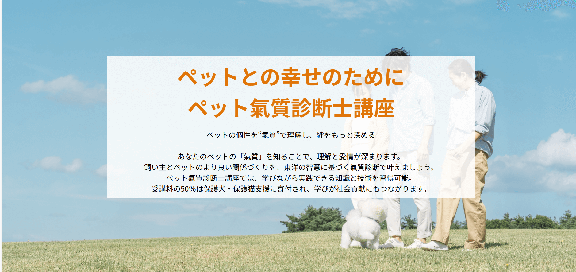 本講座は、五行理論を手がかりにペットの個性を理解し、飼い主様との関係性を整えるための学びです。オンライン完結で時間の制約がある方にも始めやすく、受講そのものが保護活動の支援にもつながります。まずは無料ガイドから内容をご確認ください。