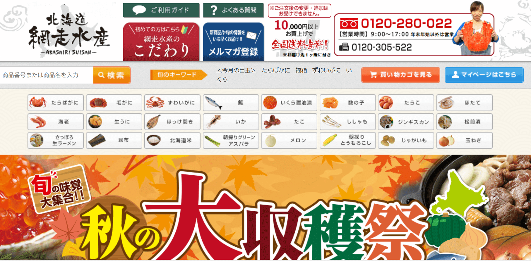 オホーツクの恵みを、できたての鮮度でご家庭へ。北海道網走水産は、オホーツク海の海産物を中心に、北海道各地から厳選した蟹・魚介・干物・いくら・鮭・帆立・農産品・銘菓まで、300種類以上の味覚を取りそろえる通販・直売の専門店です。水産会社ならではの仕入力と品質管理、中間業者を極力通さない直送体制で、季節の“いちばん良い状態”を目指してお届けします。お中元・お歳暮・年末年始のごちそうから、日々の食卓までどうぞ。