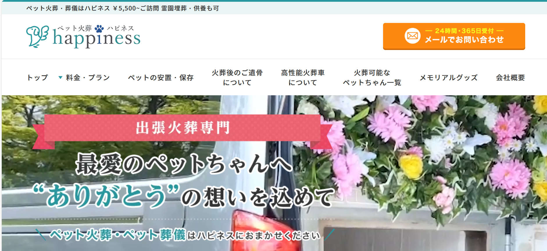 【ハピネス】は、ペット専門の火葬・供養サービスを提供する会社です。犬や猫をはじめ、小鳥やウサギ、ハムスターなどにも対応。ご家族の気持ちに寄り添い、安心してお別れができるようサポートします。特に「ペット葬儀士」が在籍していることは大きな安心材料。専門的な知識と経験をもとに、飼い主様に寄り添ったセレモニーを行っています。