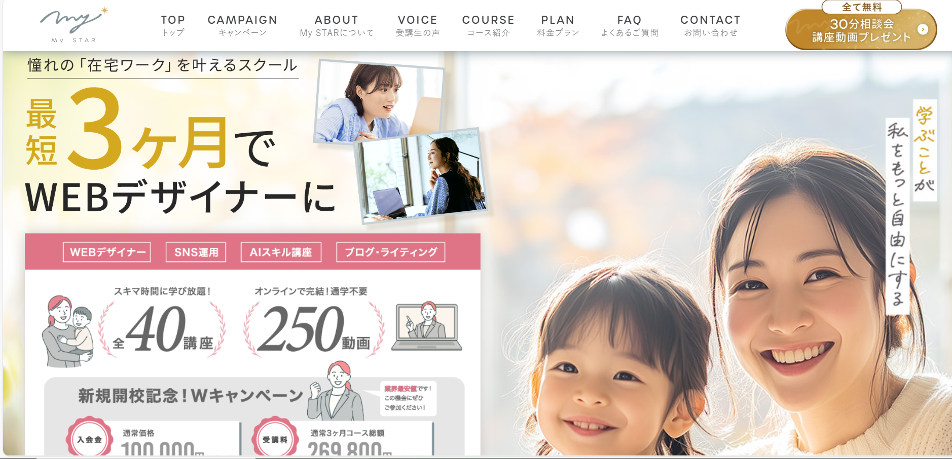 「在宅でできる仕事を始めたい」――そんな女性の声に応えるのが、女性のためのWebスクール【MySTAR(マイスター)】です。未経験からでも安心して学べるカリキュラムと、女性講師陣による手厚いサポートが魅力。自分らしく働きたい女性のキャリアを後押しします。本ページでは、MySTARの特徴や学べる内容、口コミ、よくある質問まで徹底的にご紹介します。