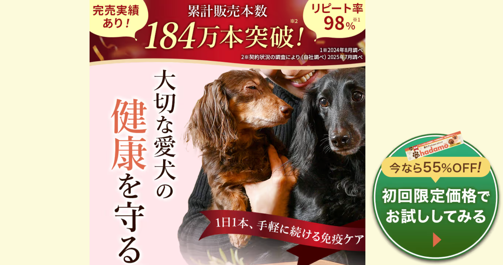 定期便でも追加送料がかからず、リピート率は驚異の98%。多くの飼い主に支持されている信頼の証です。