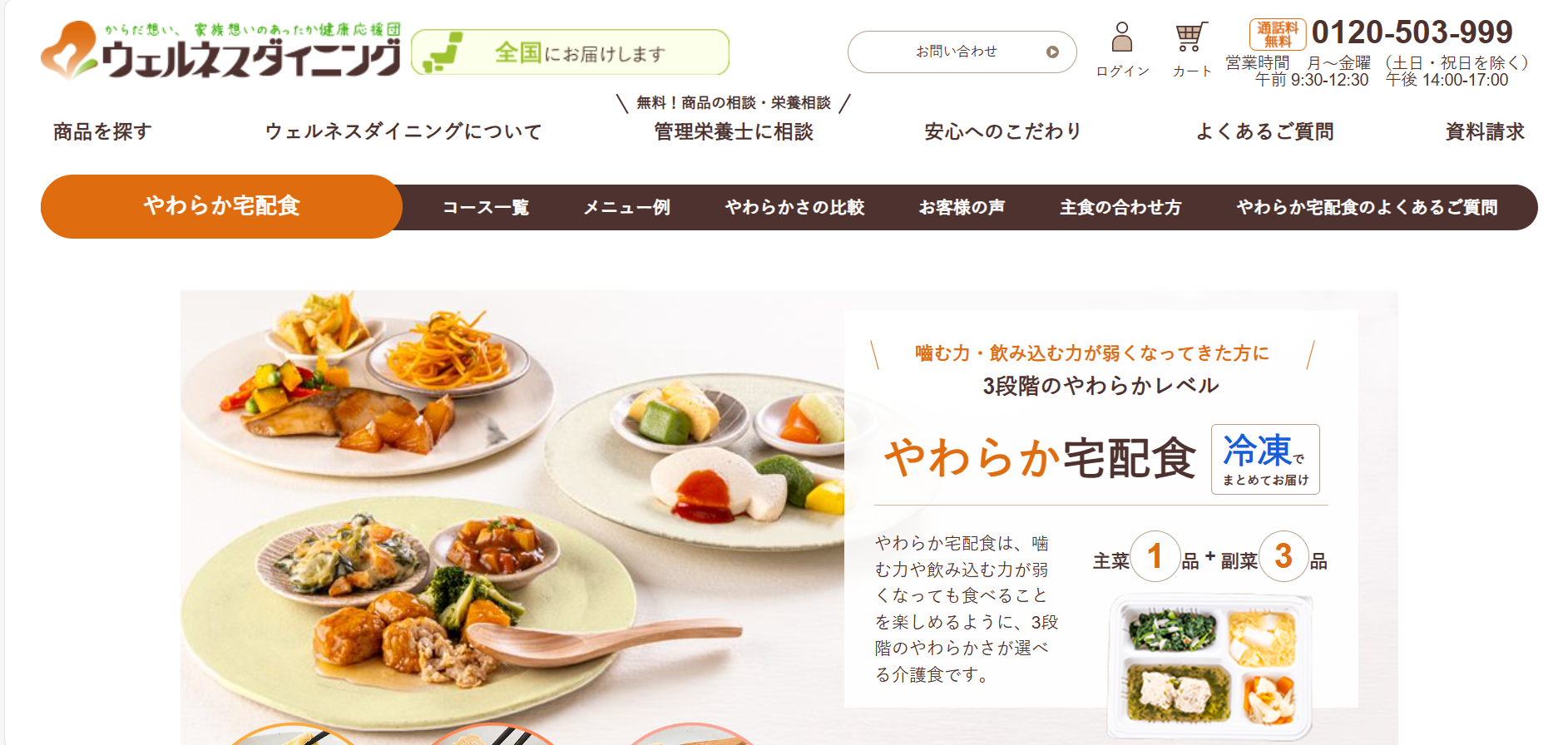 やわらかダイニングは、噛む力や飲み込む力に配慮した宅配健康食サービスです。