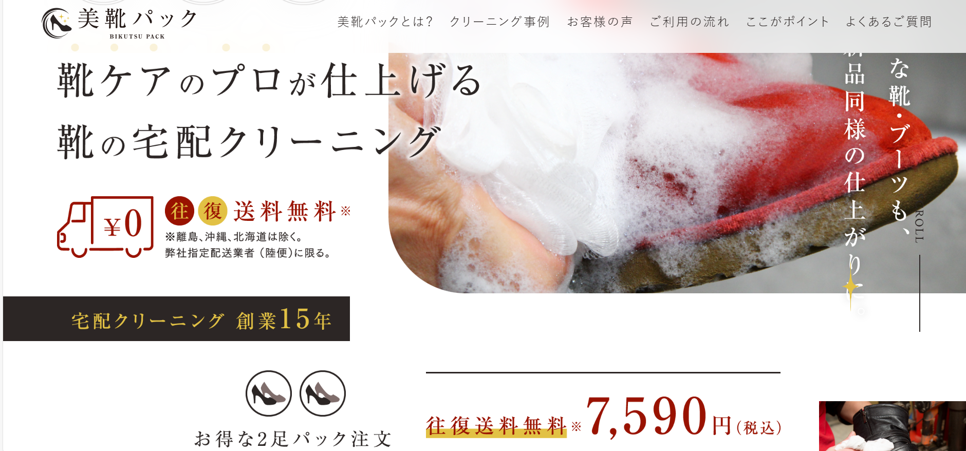そして料金体系は「2足 7,590円(税込・往復送料込み)」というパック料金制。