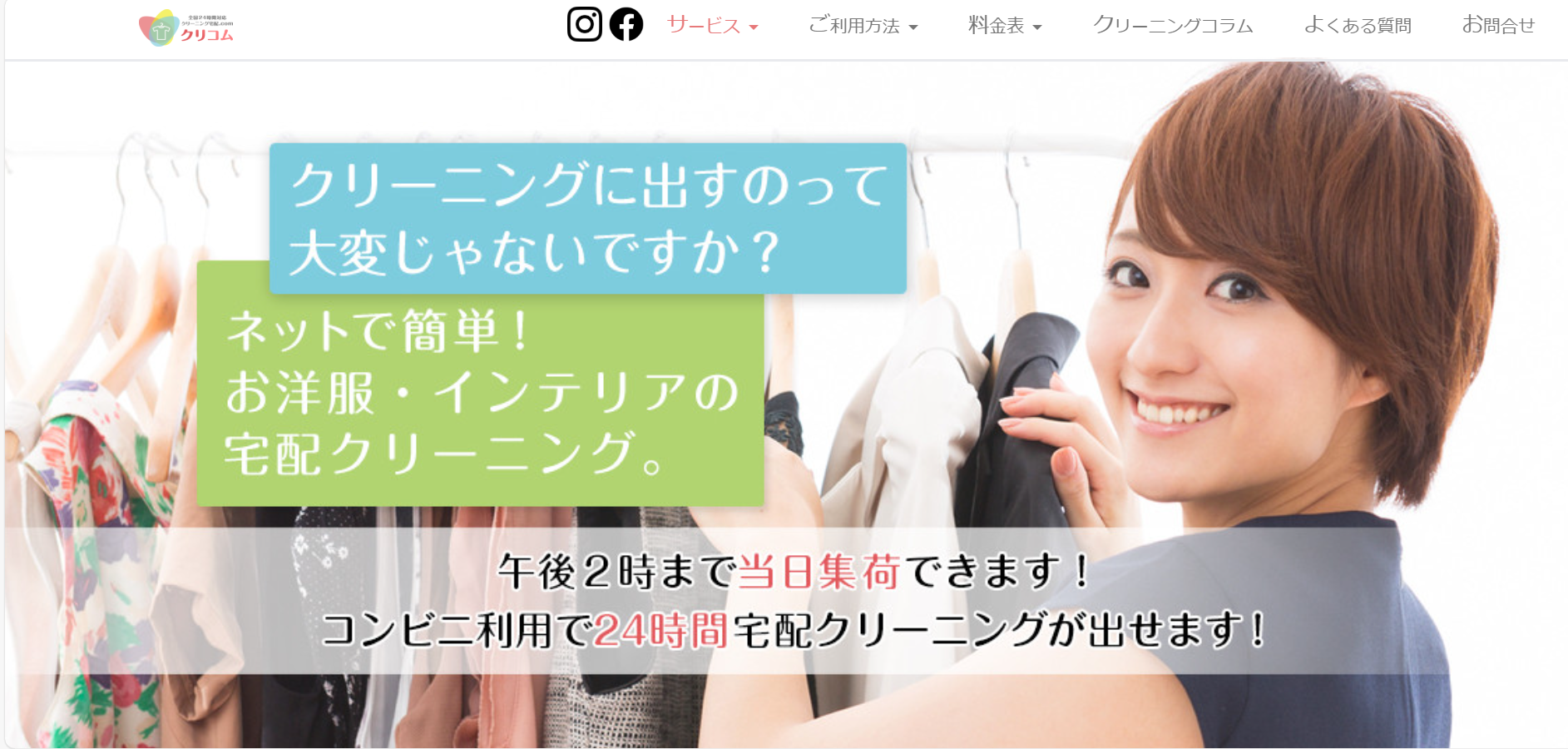 クリコムは、インターネットで24時間申し込める宅配クリーニングサービスです。申し込むと集荷資材(または手持ちの箱)で衣類を送るだけ。仕上がった衣類は自宅へ返送されるので、店舗への持ち込み・受け取りの往復が一切不要です。