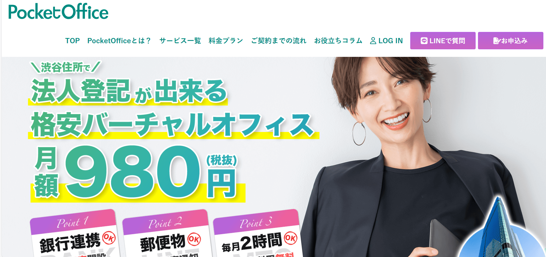 スタートアップや個人事業主が信頼を得る第一歩は、わかりやすい所在地の信用力。PocketOffice(ポケットオフィス)は、東京都渋谷区の一等地ビジネス住所を利用できるバーチャルオフィスサービスです。法人登記や郵便物受取、スキャン転送など、日々の事務をオンラインで完結。自宅住所を公開せずに、名刺やWebサイト、請求書に堂々と記載できる拠点を持てます。