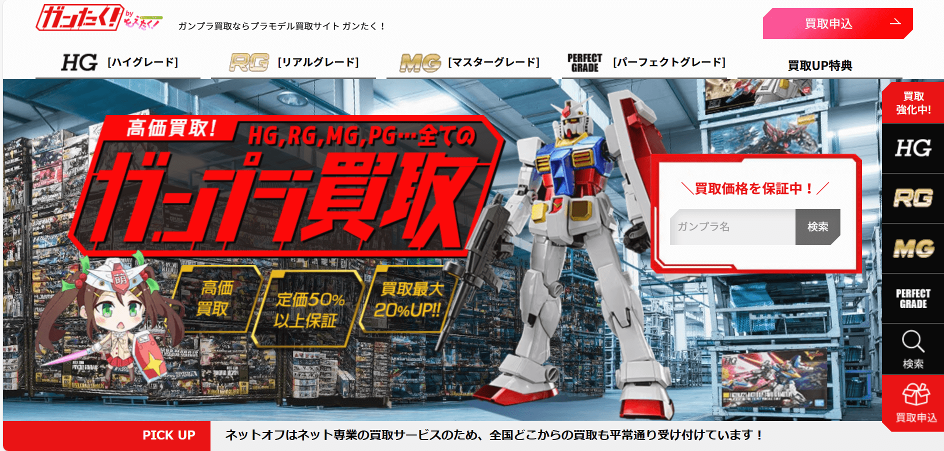 ※上記以外のガンプラ・キャラクターモデルも多数買取対象です。詳細は公式サイトでご確認ください。