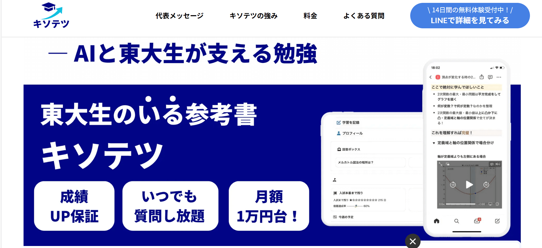 キソテツは、「勉強の質を上げたい」「効率よく成果を出したい」という高校生のための学習パートナーです。