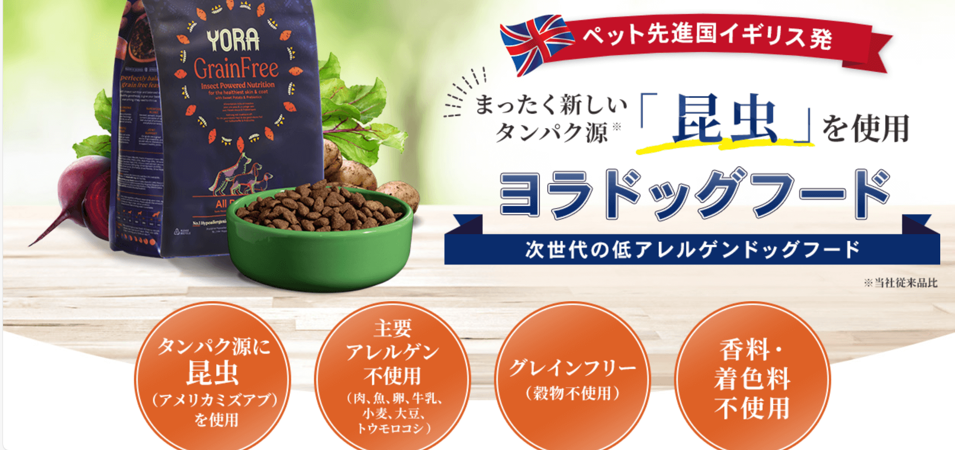 YORA(ヨラ)は、ペット先進国イギリスで誕生した、昆虫を主原料とする次世代の低アレルゲンドッグフードです。