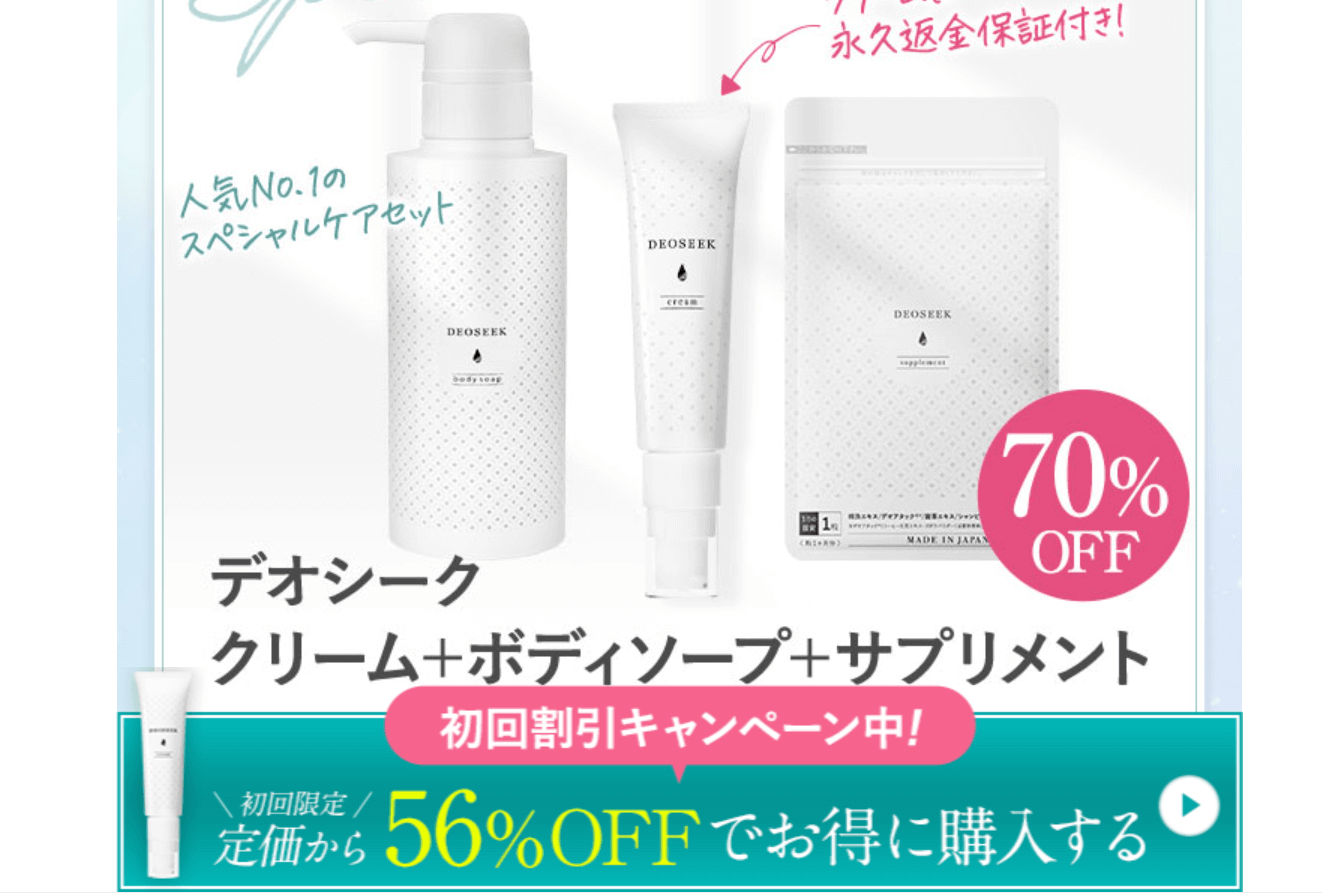 デオシークは、クリーム、ボディソープ、サプリを組み合わせたトリプルケアで、