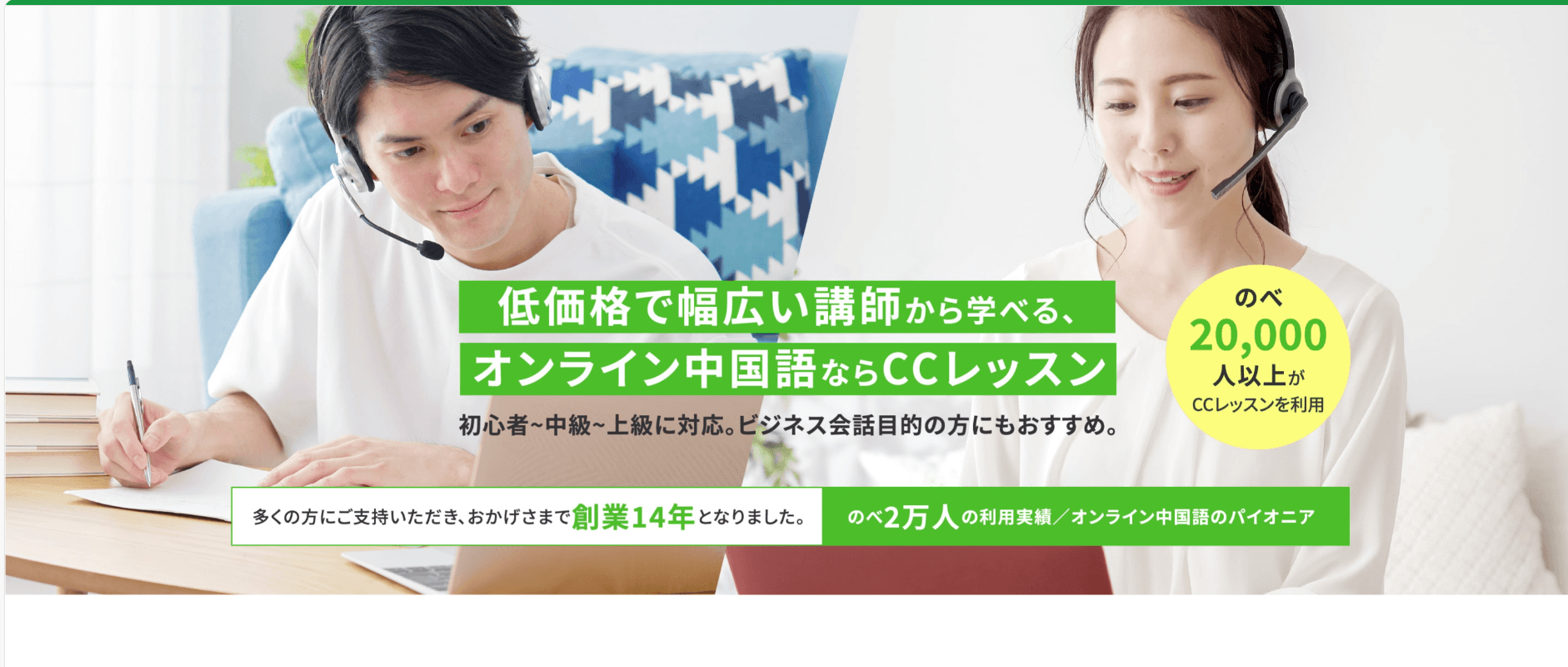 CCレッスンは、オンライン中国語専門サービスとして最大規模を誇る人気スクールです。
