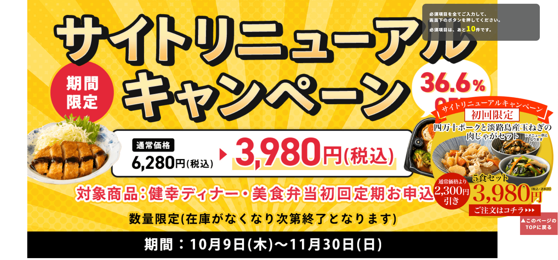 | 定期コース | お得な定期配送で1食あたり約796円(税込)〜 |