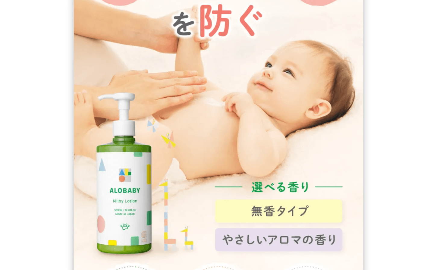 そんな赤ちゃんのお肌に寄り添うよう、アロベビーは天然由来成分を中心とした処方にこだわり、やさしく軽い使い心地でスムーズに塗り広げられるよう設計されています。使うたびにすっと伸びてべたつきにくいため、お風呂上がりの保湿時間がもっと快適になります。