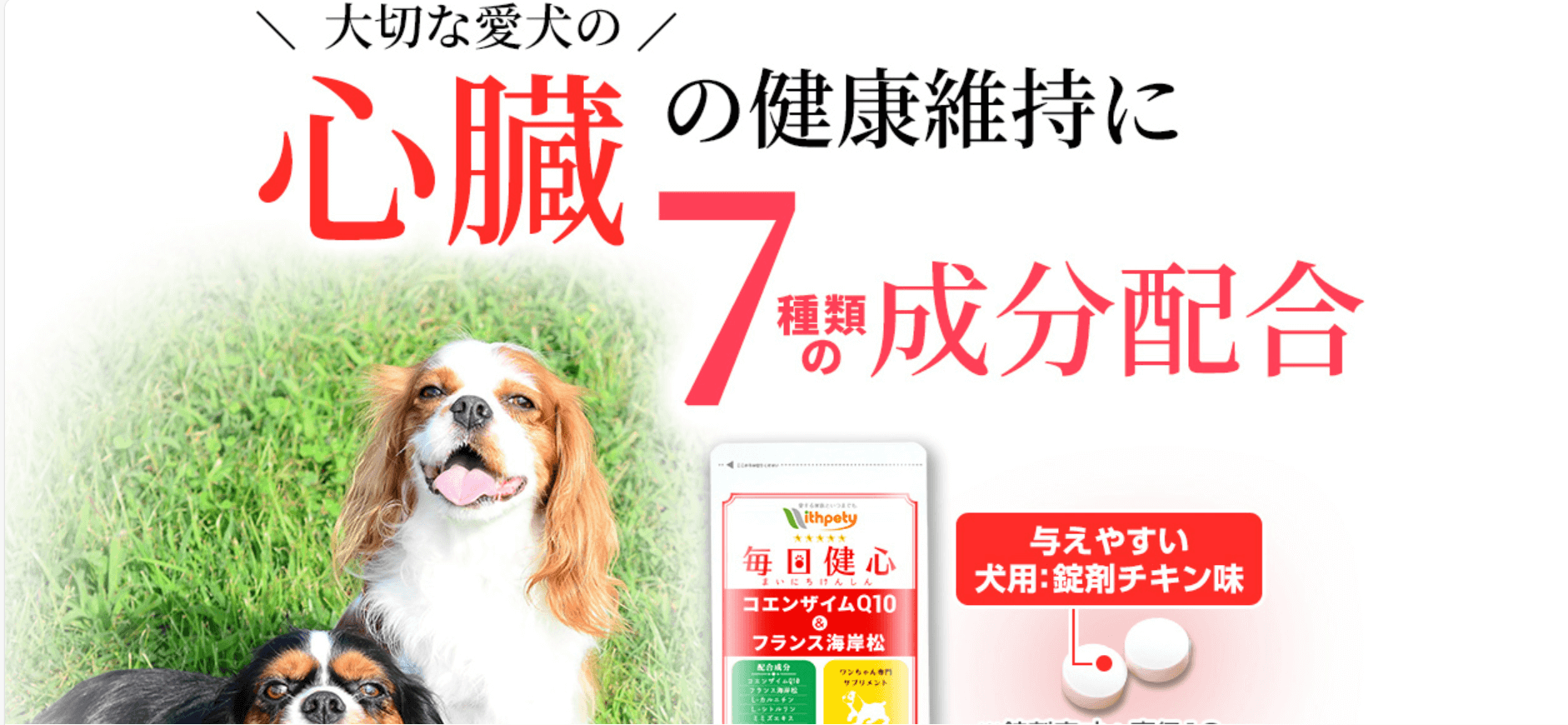 シニア期に入った愛犬の「ドキドキ」を、できるだけ穏やかに見守ってあげたい。そんな飼い主さんの想いに寄り添うために生まれたのが、犬用サプリメント「毎日健心 コエンザイムQ10&フランス海岸松」です。